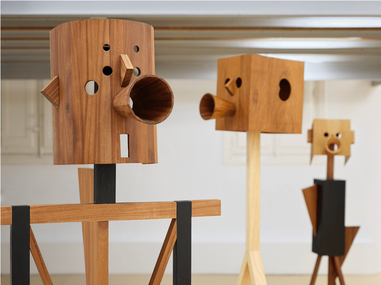 Serie de esculturas móviles desarrolladas en madera. Las piezas evocan mecanismos teatrales y formas corporales que parecen cobrar vida. El proyecto pone en relación técnica, movimiento y representación.